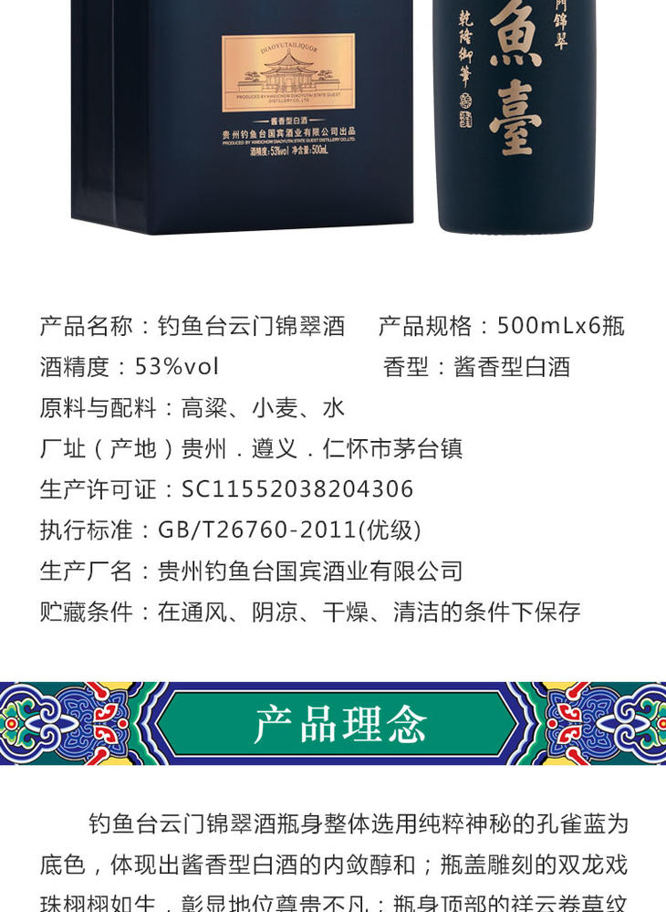 钓鱼台云门锦翠酒 贵州茅台镇香型53度白酒